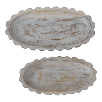 Bandejas para servir desgastadas, Juego de 2 con forma ovalada texturizada, madera de mango lavada a mano, Decoración de mesa de cocina para el hogar, Navidad