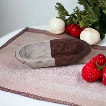 Vacío hecho a mano blanco y marrón ovalado pequeño multiusos de alta calidad 100% mango natural respetuoso con el medio ambiente decoración del hogar cuenco de madera