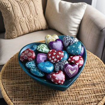 Juego decorativo de lujo moderno para el hogar, 6 corazones antiguos, piedra de esteatita artesanal grabada a mano, piedra Natural, artesanías indias talladas