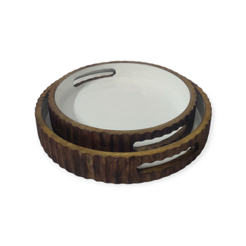 עתיק לבן & אגוז חום לבן עץ מנגו בעבודת יד עגול הגשה מגש עם ידית חג המולד & חתונה