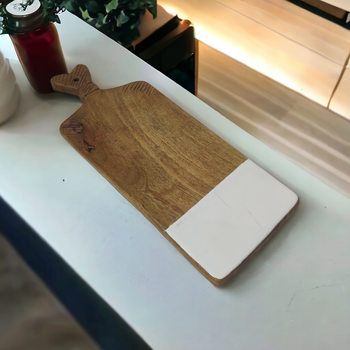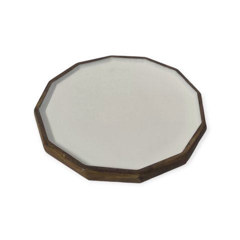 מגש הגשה מעץ מנגו אמייל לבן בעבודת יד של אומנים הודיים לתצוגת הגשה עיצוב בית ומטבח חגיגי