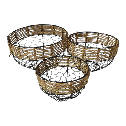高品質環境にやさしいジュートロープ籐フルーツバスケット手織りインド職人卓上ディスプレイ工場価格金属籐